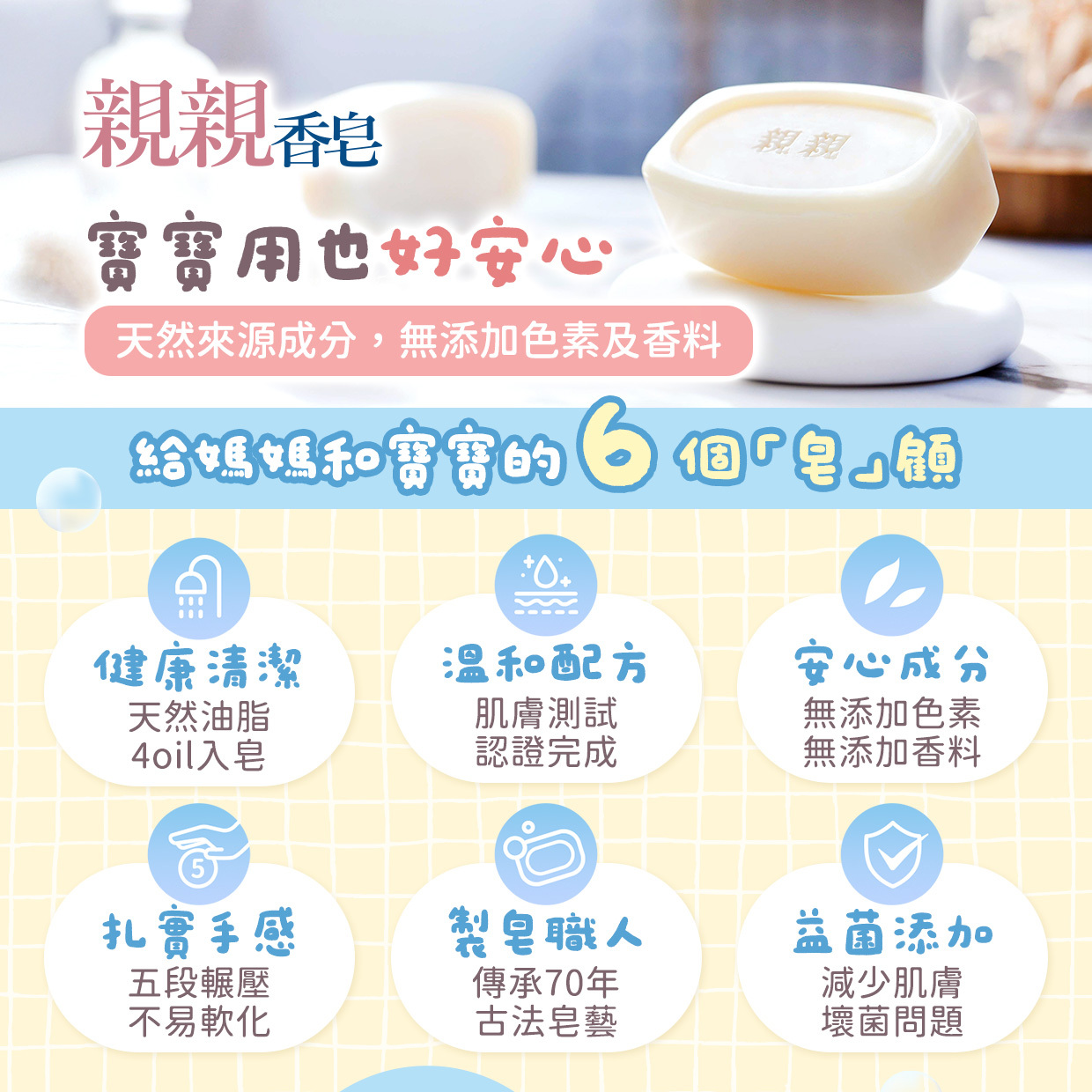 【寶寶用也好安心】親親香皂100gx3入+親親隨手皂35gx2入